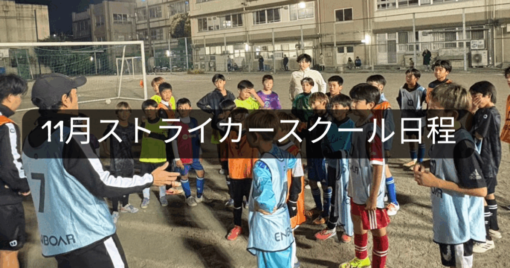 - 11月のストライカースクール日程のお知らせ(川崎市立臨港中学校)こんにちは🍁 朝晩の冷え込みが増し、いよいよ本格的な秋が深まってきましたね。スポーツをする… 続きを読む: 11月のストライカースクール日程のお知らせ(川崎市立臨港中学校)